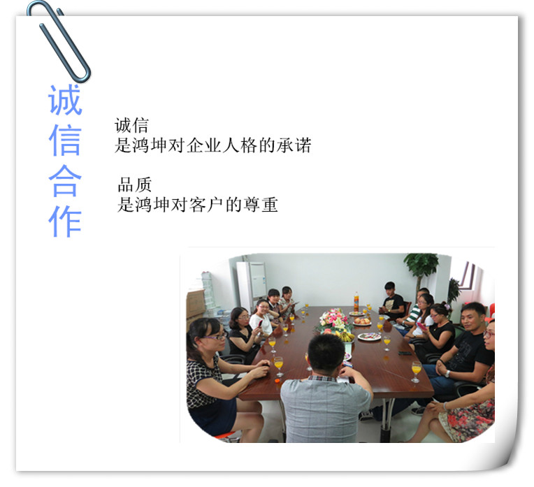 誠實守信是鴻坤對企業人格的承諾,腳踏實地的開發和滿足客戶的需求,力求不斷創新,更注重產品的安全環保,精益求精是鴻坤不斷追求的目標。