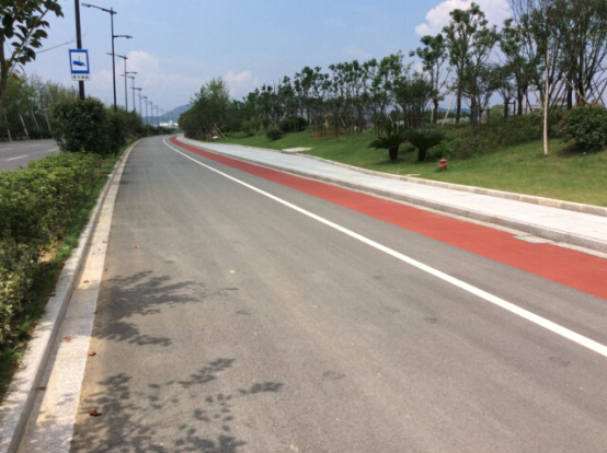 改變傳統(tǒng)路面的面貌,可以根據(jù)小區(qū)周圍環(huán)境選擇相應的色彩,在提高行車安全的同時達到美化環(huán)境效果。(現(xiàn)可提供紅、綠、藍、黃四大色系的道路面層,亦可根據(jù)要求定制顏色)