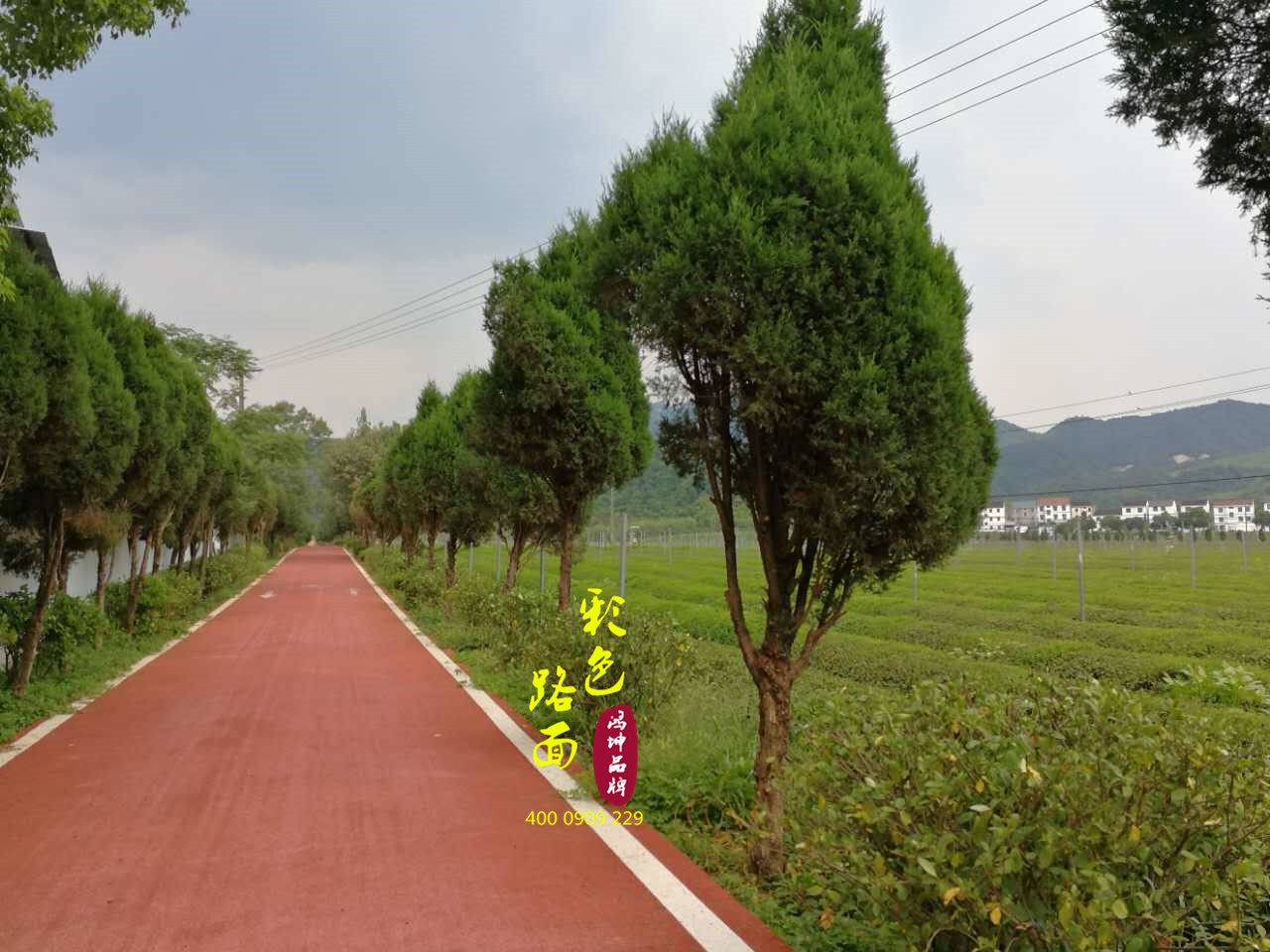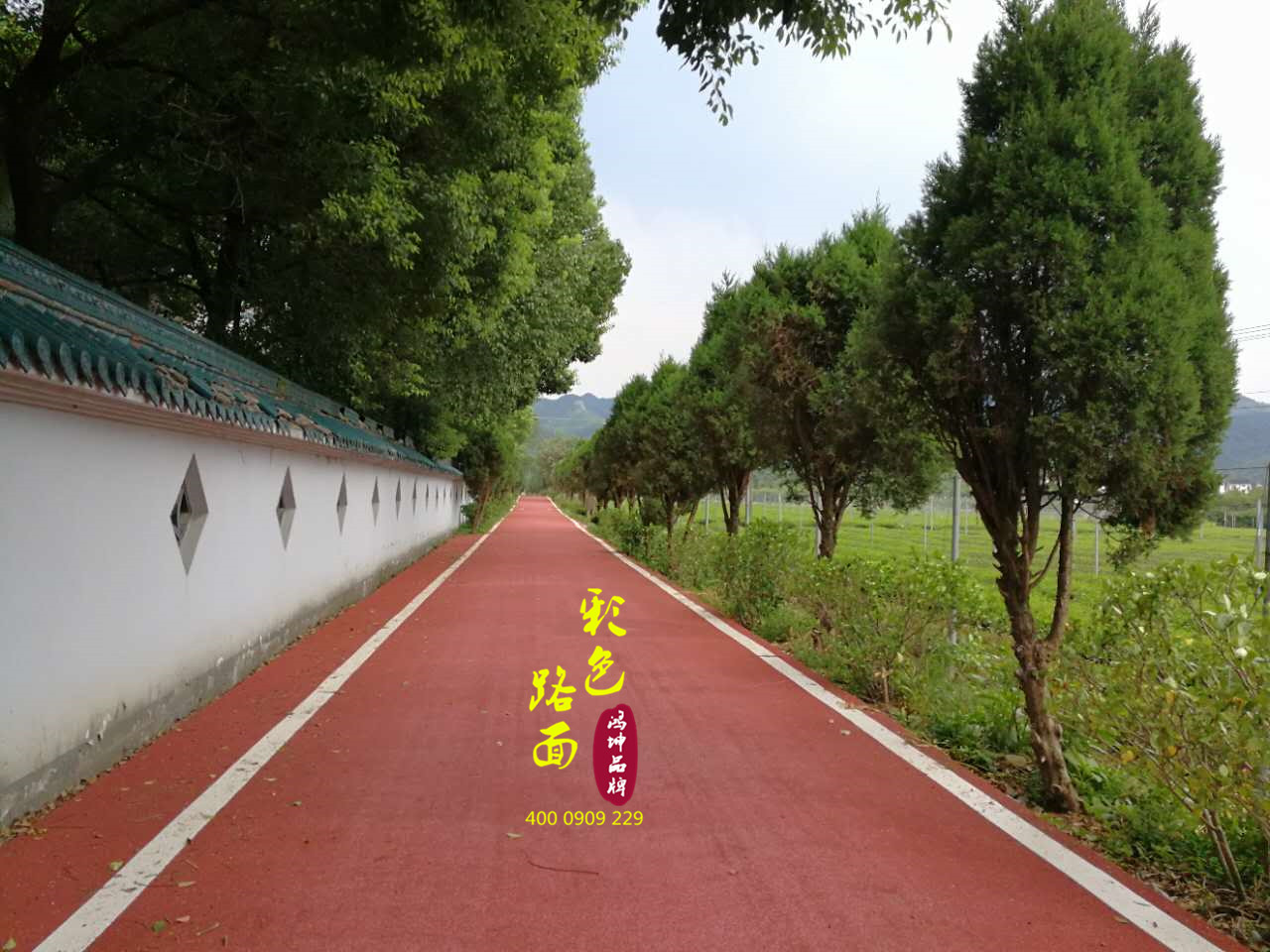 客戶評價:“抹茶小鎮(zhèn)周圍人行步道比較多,增加美觀色彩的同時也可以增加防滑耐磨功能,鴻坤的水性彩色路面材料確實不錯,沒有刺激性味道,施工工期也比較短,紅色的彩色路面和周圍的綠色環(huán)境搭配出一幅美好的景色!”