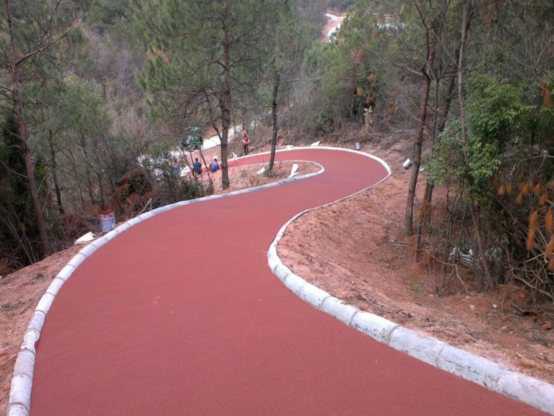 鴻坤彩色防滑路面(綠道)特點:路面散水性好、高度防滑、縮短剎車距離、安全可靠,美化環(huán)境、交通警示、降低噪音,是環(huán)境友好型地面材料。