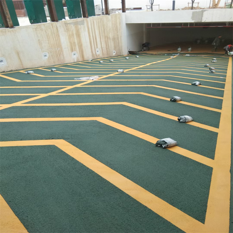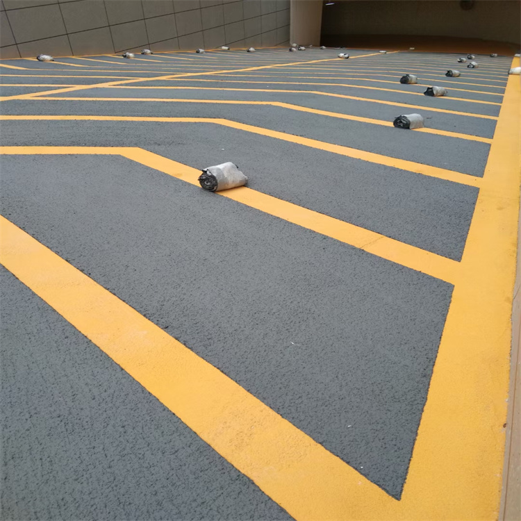 鴻坤防滑坡道材料屬于聚合物砂漿材料,水性環(huán)保,施工簡單,施工人員和使用人員都很友好。無震動防滑坡道施工分為打底、批刮黃色抗壓層、貼美紋紙、批刮綠色止滑層和罩面幾個步驟,整體厚度在5-6mm左右,表面的粗糙顆粒形成一定的防滑效果,不僅有安全防滑的功能,還有導(dǎo)向箭頭,對車輛行駛有引導(dǎo)作用。