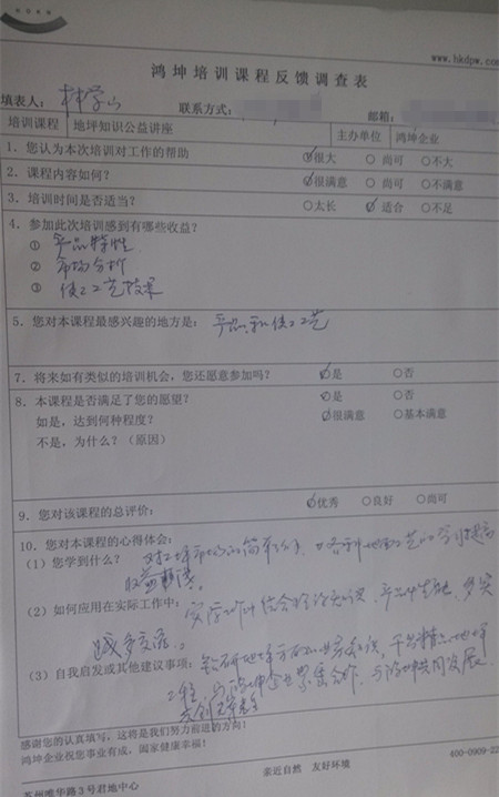 南京林總對于鴻坤企業第三期地坪知識講座認為對工作幫助很大,對我們設置的課程內容很滿意,培訓時間適合。 鴻坤企業:參加此次培訓感到有哪些收益?南京林總:1.產品的特性;